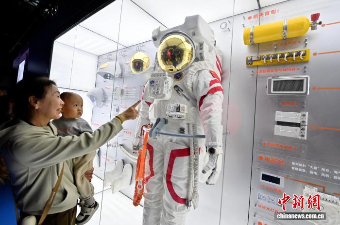 3月24日,凶林少秋,市平易近正在观光航天服模子。中新社记者 弛瑶 摄